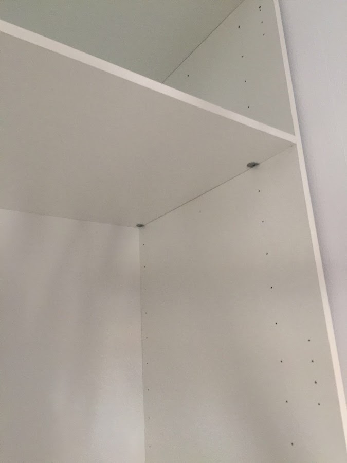 Como ves estos modulares vienen perforados y nos facilita mucho a la hora de la colocación de las baldas. Yo he querido baldas haciendo la zona de altillo. (Perdón por mis uñas jiji)