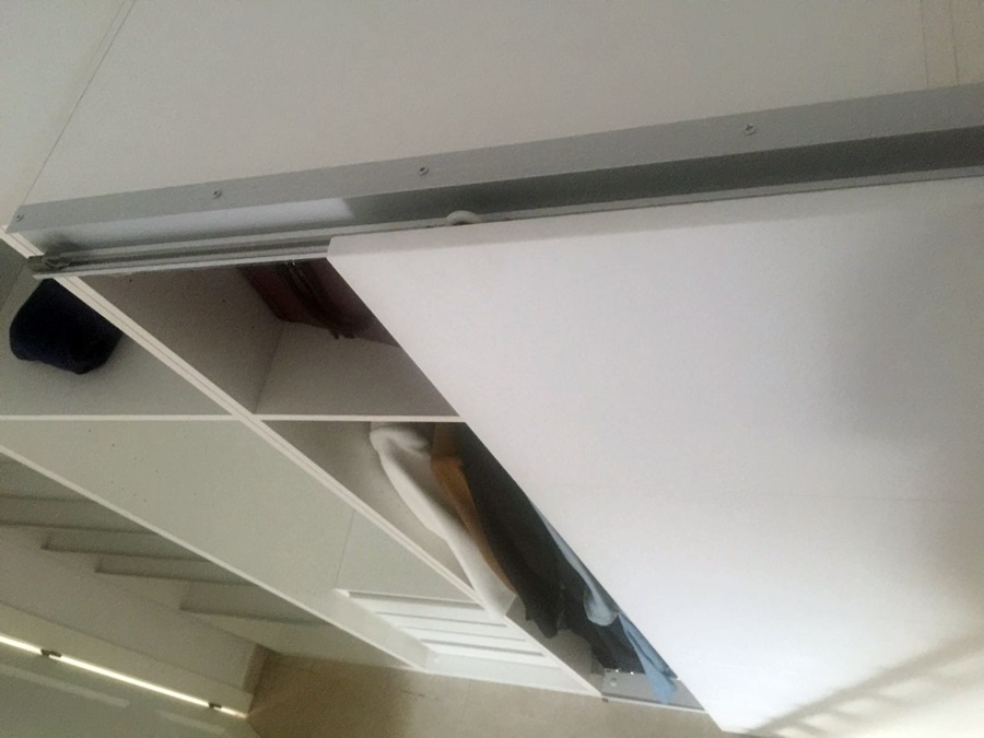 Instalación puertas correderas: Primero se atornillan las guías, yo seguí las instrucciones y las atornillamos desde el principio una vez que teníamos los kit montados y atornillados. Como te digo viene todo muy bien explicado.