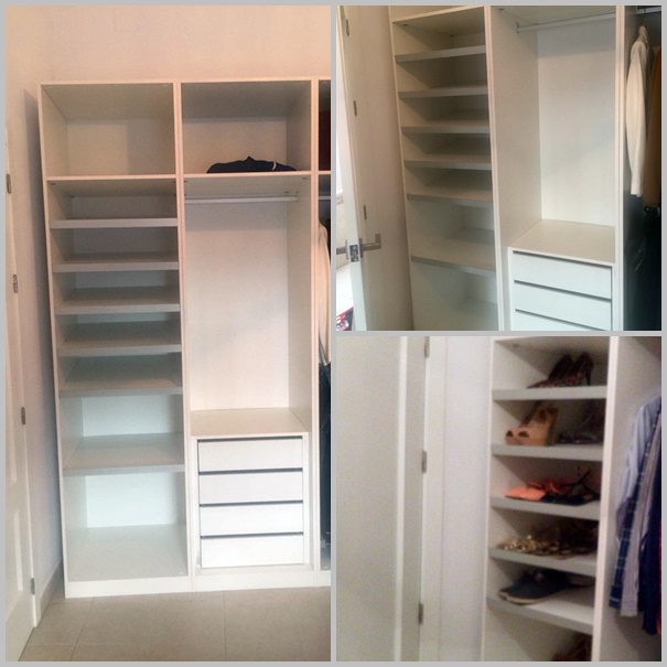 Yo lo he ido montando en 4 tardes, y es que todos los días echábamos unas 2 o 3 horitas, por el trabajo no teníamos mucho tiempo, pero cada ratito colocaba algo de ropa, y alguno zapatos, pero todo esta provisional, así que el resultado los veras pronto. Si tienes dudas o alguna pregunta no te olvides dejármela en comentarios o mandarme un mail, te la resolveré enseguida.