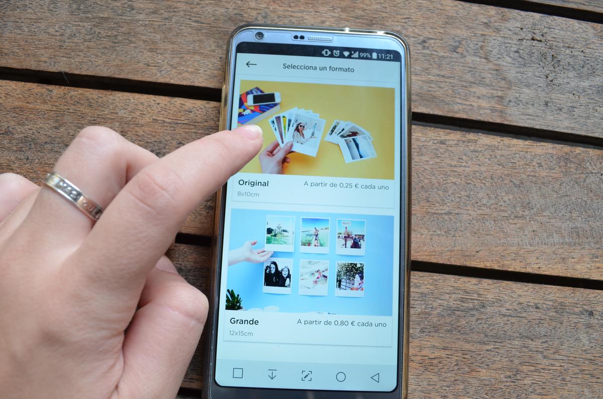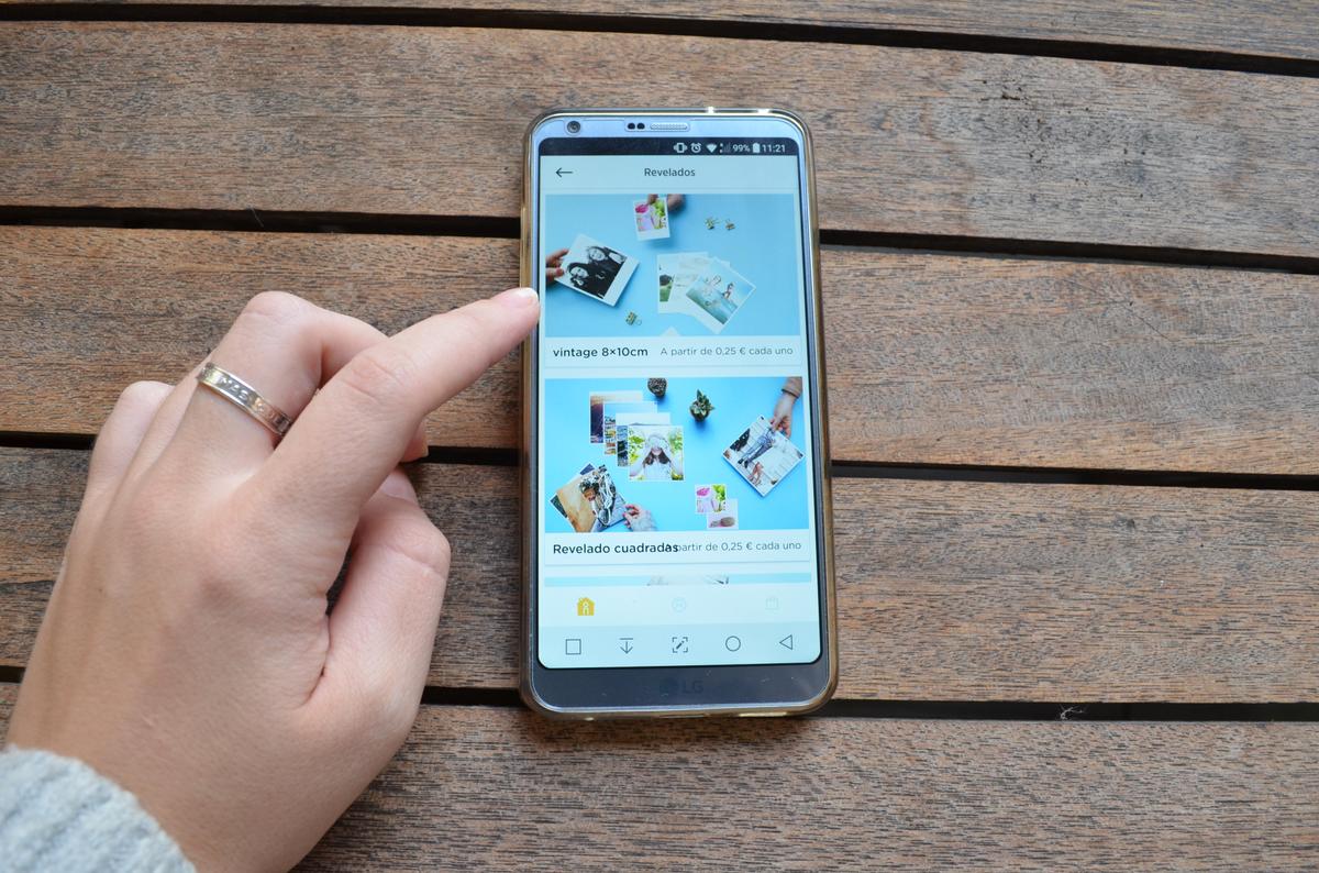 El proceso a través de la app es super sencillo, tan solo descargar, ir desplazándose por los menús e eligir que tipo de impresión queréis, además os va indicando los precios (si pedís varias cosillas os van aplicando descuentos…). Yo opté por un revelado normal en estilo vintage, como si fotografías de la Polaroid se trataran, y a ¡0.25 cada una!. El siguiente paso es elegir las fotografías directamente desde vuestra galería o desdes Facebook, y una vez que las tengáis os deja además ¡aplicarle filtros o escribir texto!, yo obvié lo del texto, pues me gusta más hacerlo a mano, pero sí que usé algún filtro en alguna de ellas y el resultado es espectacular.