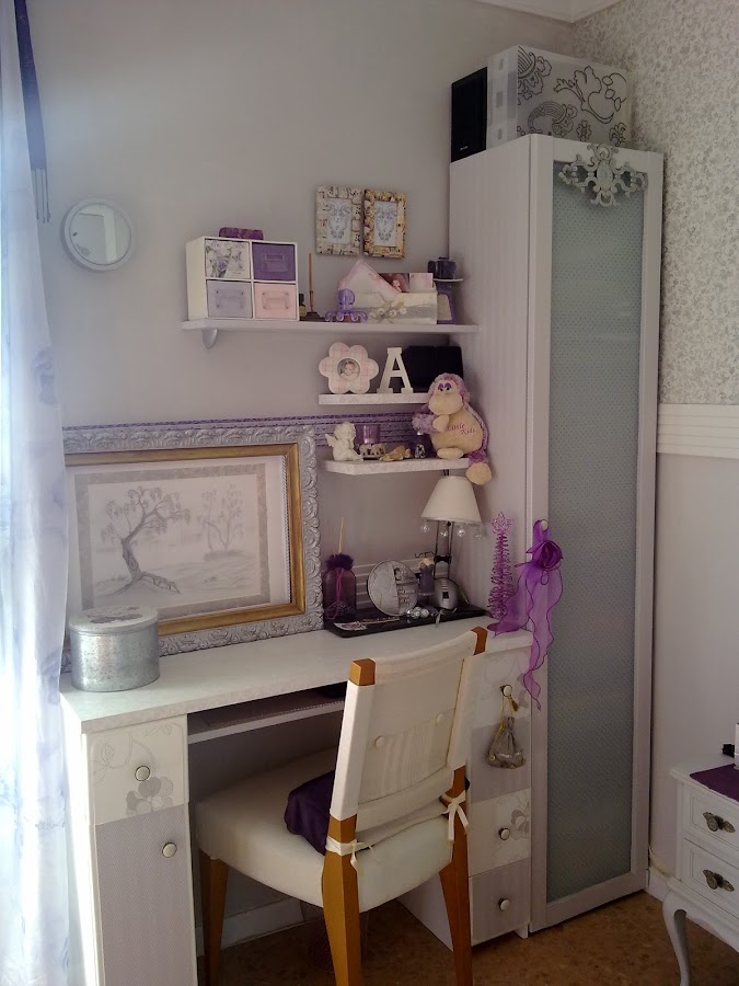 El escritorio también merece una mención aparte. No se aprecia la encimera con flores en gris.