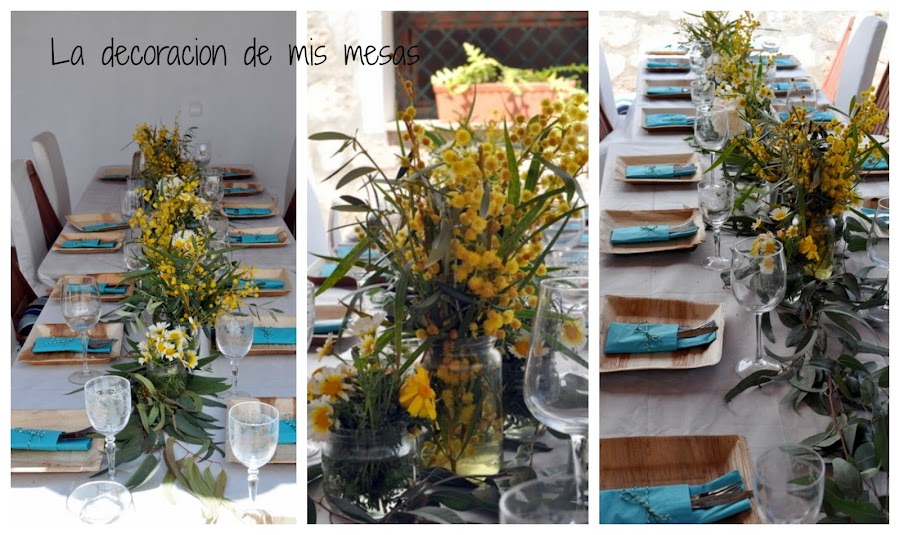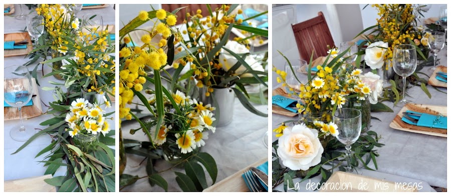 1ª No gasté en flores, todas las recogí del campo (margaritas silvestres, varas de mimosa, ramas de acebuche, romero y de eucalipto).