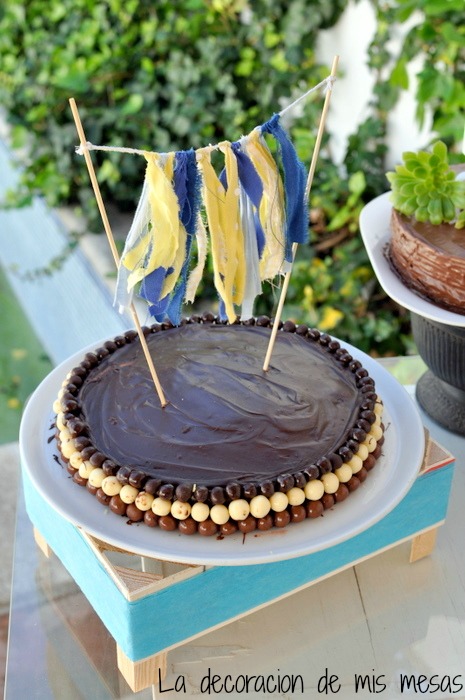 Dos tartas caseras, of course! una de obleas con nutella y otra de bizcocho de fresa y smalteses que llevaba como decoración un mini banderín de flecos a juego hicieron que el momento "postre" fuera especial.