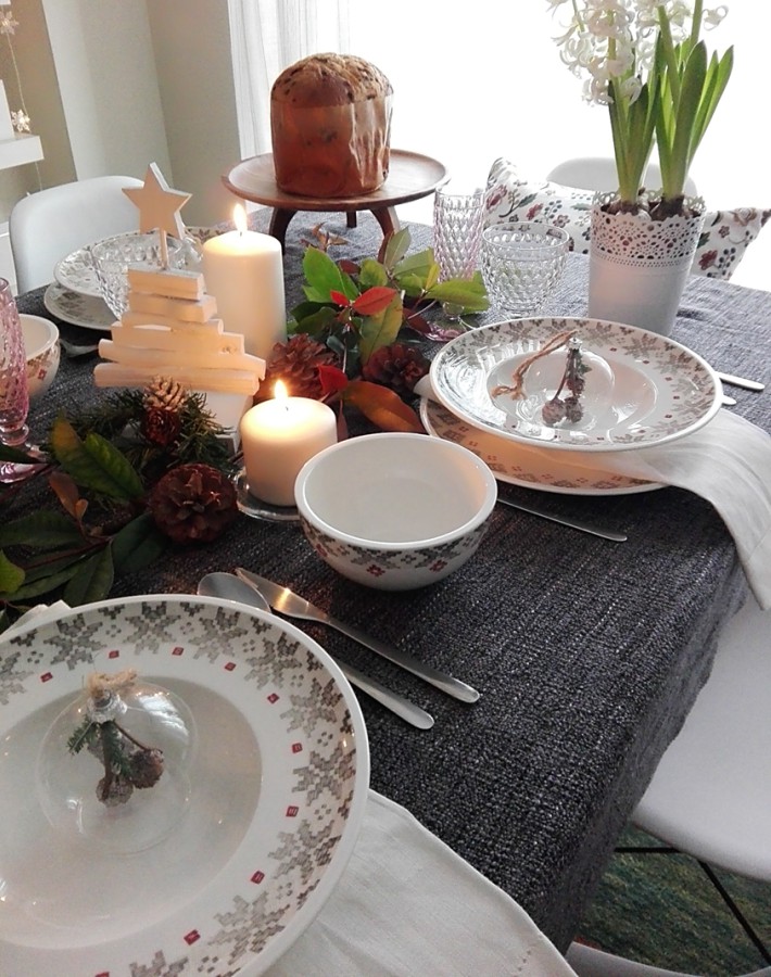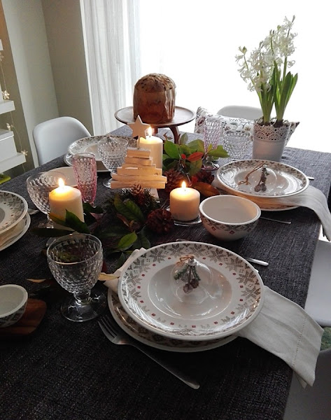 Para finalizar en un extremo de la mesa dejamos una bonita maceta con un jacinto que ya ha florecido. El jacinto es una de las 4 plantas ideales para Navidad.Os dejo las imágenes