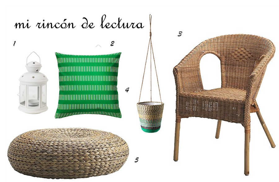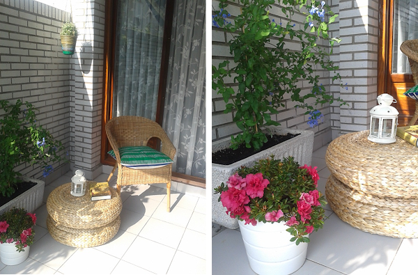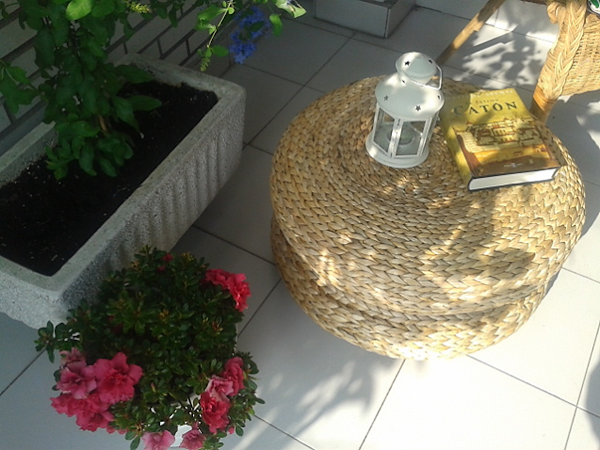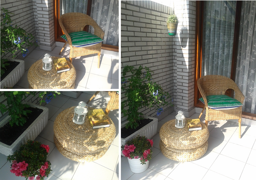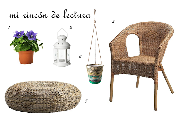 Aunque mi casa no es muy grande, tengo la suerte de tener una terraza de 50 metros cuadrados. Hace tiempo que planeaba dedicar un pequeño espacio de ella para un rincón de lectura. Cual fue mi sorpresa cuando este pasado mes de agosto mi marido me regalo una butaca de rattan. La escusa ideal para adquirir una serie de elementos para convertir este espacio en mi pequeño refugio. Empecé por una de mis piezas favoritas de Ikea el puf de ratán Alseda, despues elegí un colorido cojín en tono azules y verdes, un tiesto colgante a juego, plantas con flores, y recoloqué un farol y unas pequeñas luces que ya tenía, para las noches de otoño.