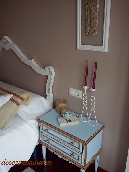 Como ya había publicado, hace ya un tiempo!! madre como corre éste!!, el cabecero y la mesita están hechas por una menda, al igual que los portavelas, con lo que es todo made in María.