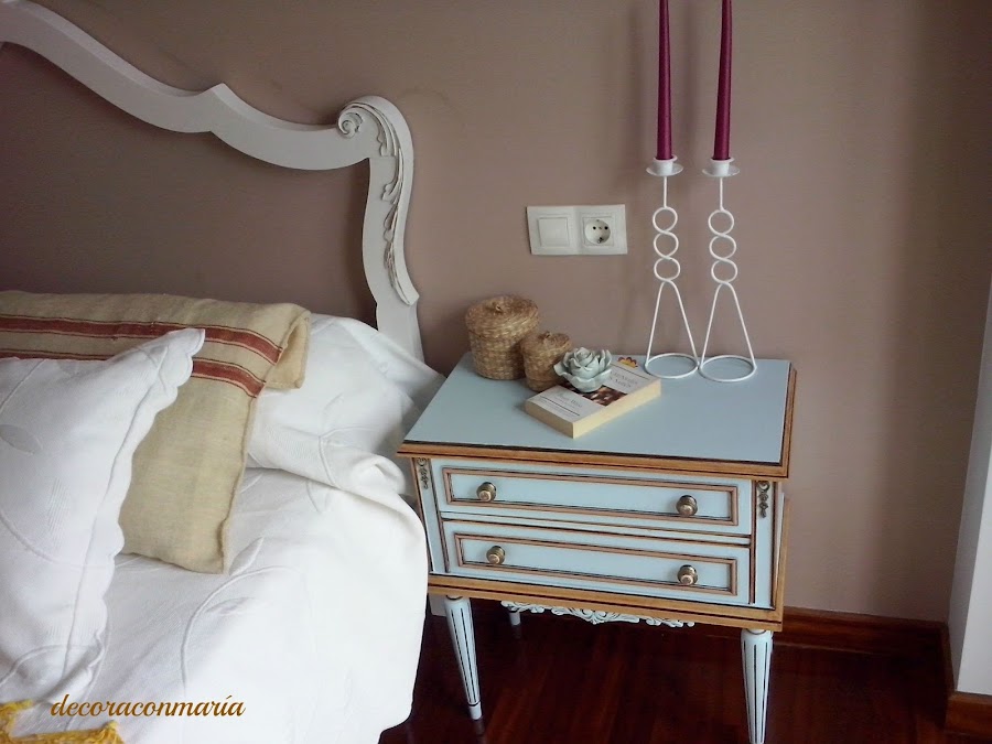 Si quereis ver el "antes y después" del cabecero y mesita están en la sección de etiquetas de mis trabajos.