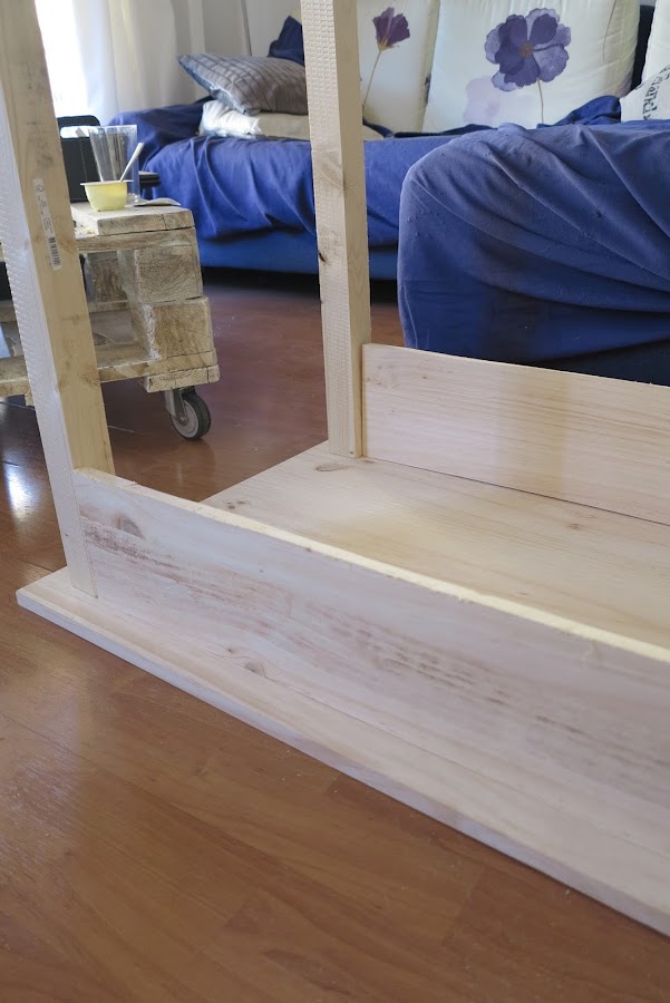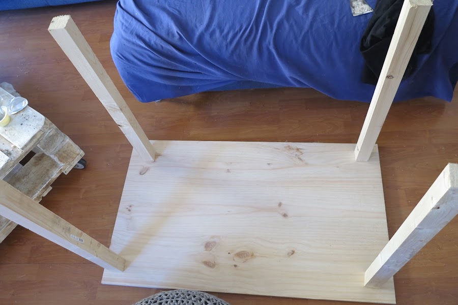 Con los listones corte 4 patas de 72 cm de alto (lo bueno de cortarlo vosotros o la tienda es que os podéis hacer las medidas que queráis y mejor os vengan)