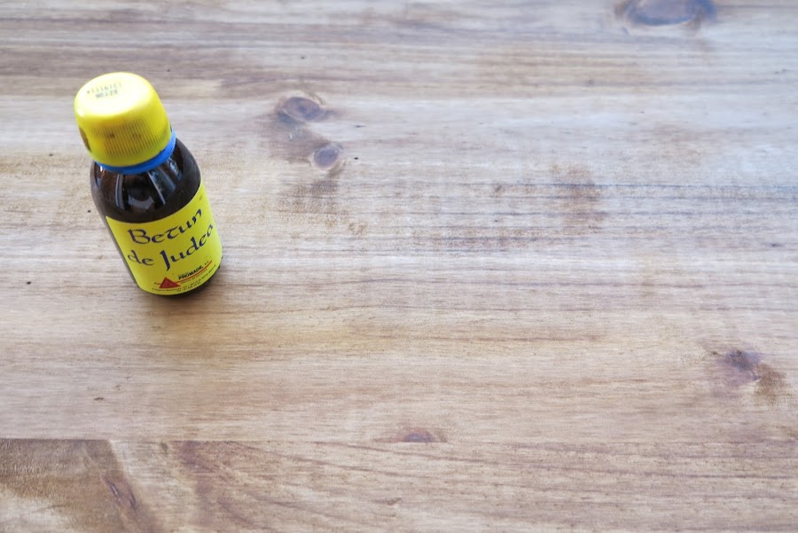 Paso 6.Envejecer la madera con Betún de Judea. Ya sabéis que el betún de Judea es perfecto para envejecer nuestros muebles, pero es un producto con el que tenemos que tener cuidado, así que podéis disolverlo un poco con aguarrás, y siempre tener al lado un trapo para retirar el exceso.