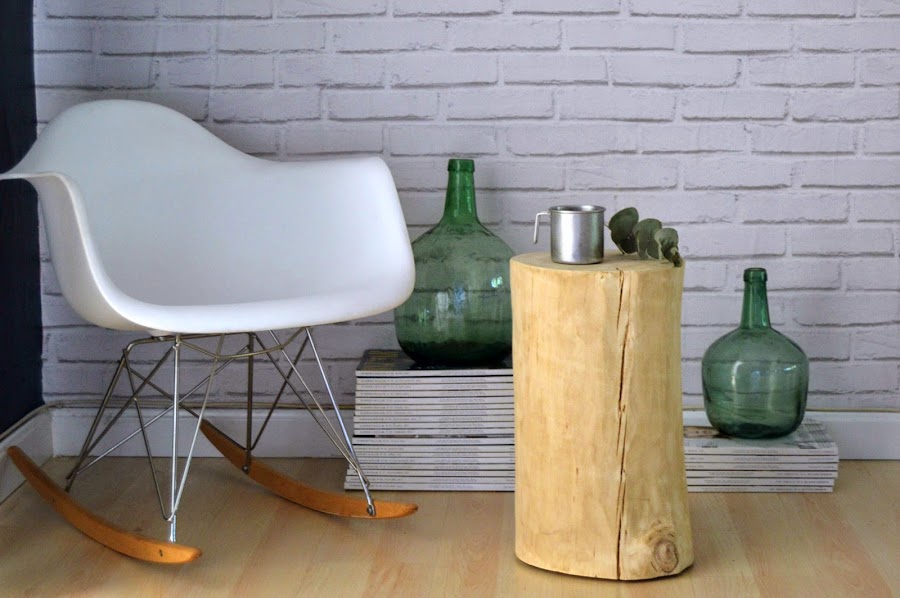 La semana pasada en el blog de Diariodeco sorteamos con Muebles Lufe dos de sus mesitas auxiliares hechas a partir de troncos, en cuanto las vi, no podía dejar de pensar en ellas, las imaginaba en el dormitorio a modo de mesilla, en la terraza o en el salón como mesita auxiliar e incluso en el baño con una bonita planta encima. Pues bien, finalmente me hice con una de ellas y este ha sido el rincón que he montado, eso si, no creo que sea el último, porque estoy segura de que irá rotando por toda la casa. Sólo os digo que echéis un vistazo a la página (muebleslufe.com) porque tiene cosas muy chulas y a muy buen precio, fundamental cuando, como es mi caso, tienes un nuevo espacio enooooorme que decorar.