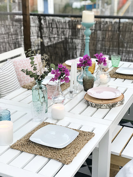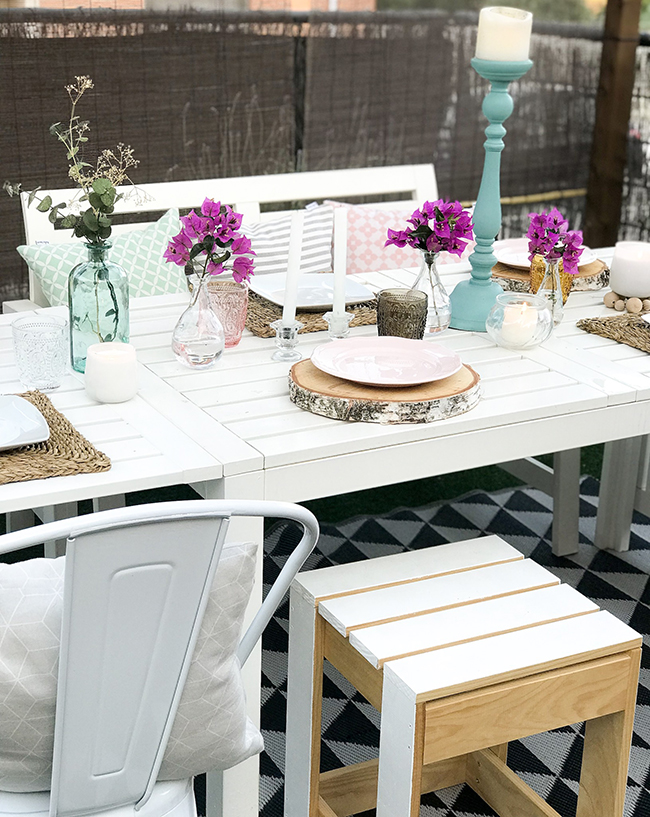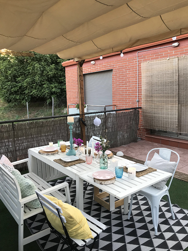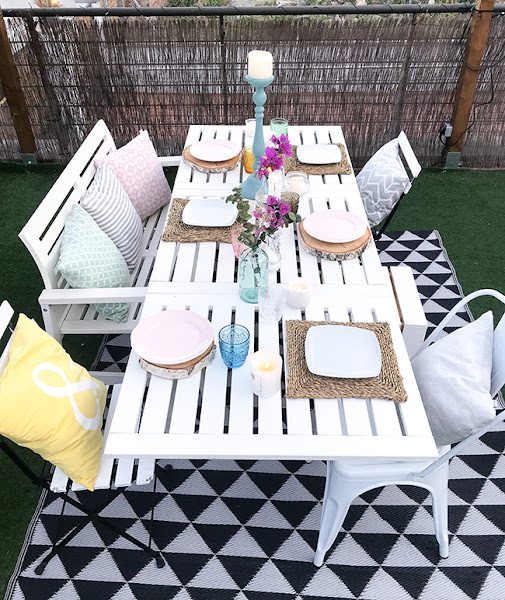 ¿Os acordáis que hace unas semanas publique la primera parte de mi terraza? Aquí tenéis el enlace para echarle un vistazo y ver la zona de los sofás. Ahora nos vamos a la zona del comedor, que la verdad que ahora que llega el buen tiempo la usamos muchísimo, tanto para invitar los amigos a comer o cenar, como para cuando estamos solos.