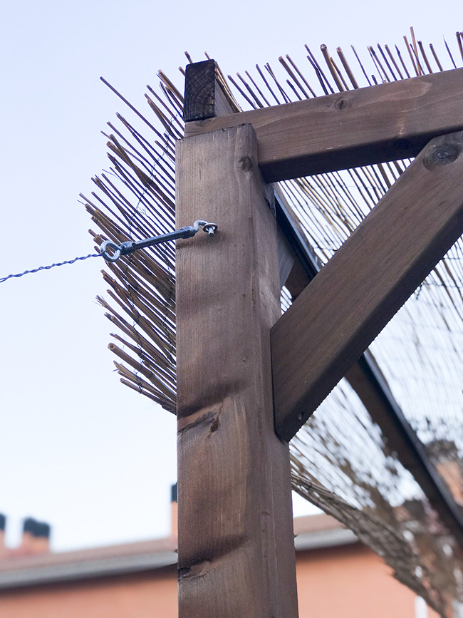 Además, os aclaro que para no hacer agujeros en el suelo y que la pérgola quede perfecta, hemos utilizado este sistema de fijación.