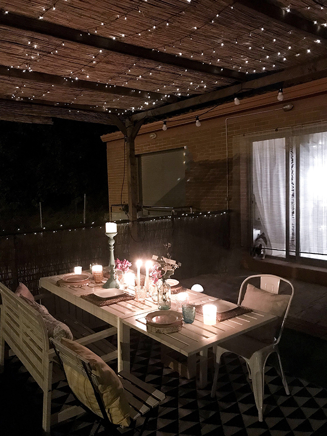 Aquí tenéis las imágenes del día y la noche para que podáis ver la diferencia y lo bonito que ha quedado. Estoy deseando hacer cenas y cenas para aprovechar este rincón de mi casa.