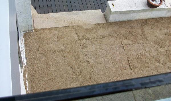 La colocación, como te decía es sencilla, al tener ya el piso de pizarra instalado bien podría colocarse directamente sobre éste, pero para su mantenimiento y mayor conservación se recomienda instalarlo sobre una cama de arena. Así hicimos: