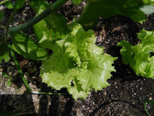 También tenemos un pequeño huerto urbano en una gran cuba de vino cortada de forma transversal, donde cultivamos lechugas, tomates, algún pimiento, perejil y hierbas aromáticas.......es un gusto ver crecer las lechugas y nacer los tomates.