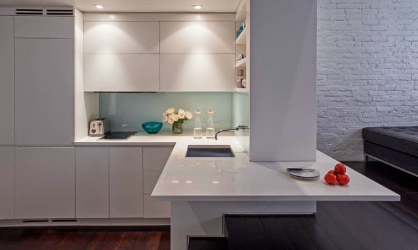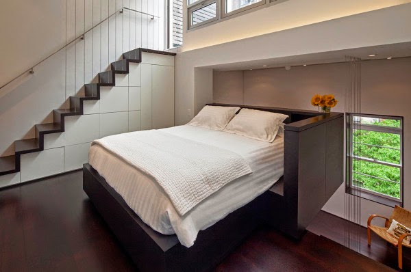 Situado en pleno Upper West Side (Manhattan) nos encontramos con este micro loft de 40 metros cuadrados, que a partir de la creación de múltiples capas (gracias a sus 7 metros de altura) fueron capaces de dar cabida a todas las necesidades del apartamento en un espacio abierto y luminoso.