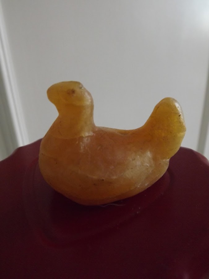 De jabón chicas. La tengo hace montones de años, por supuesto nunca la he utilizado para lavarme las manos, me da muchísima pena que se deshaga, así que la mantengo como adorno en mi cocina...