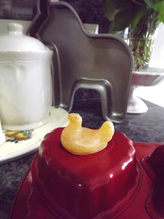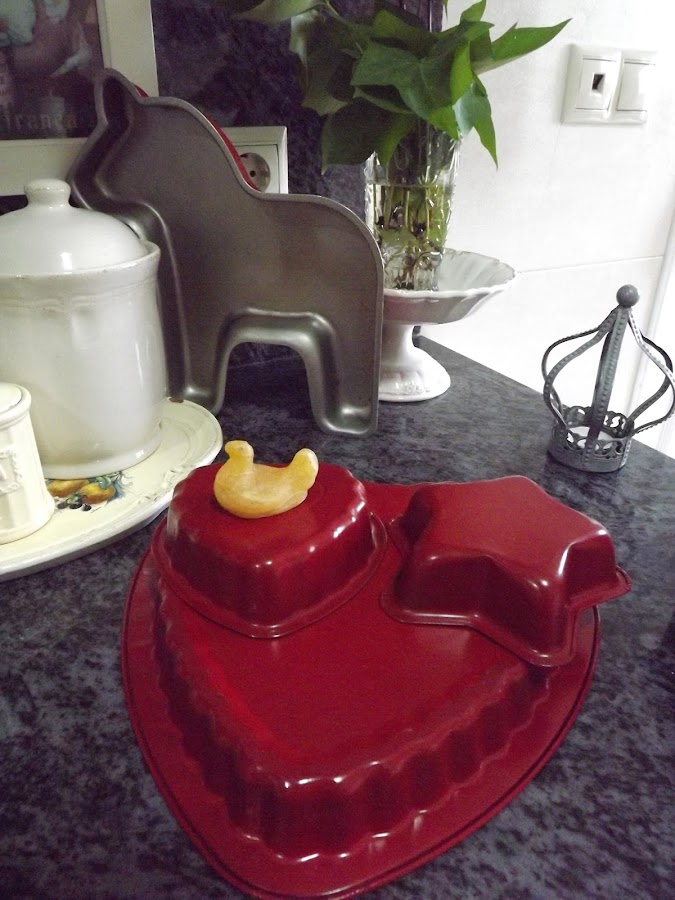 Sigo hablando con todas vosotras y ahora os muestro mis moldes de reposteía, sobre ellos una diminuta gallina...