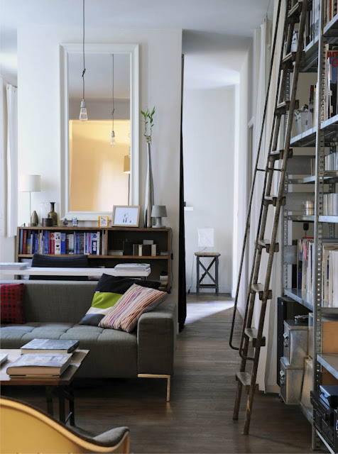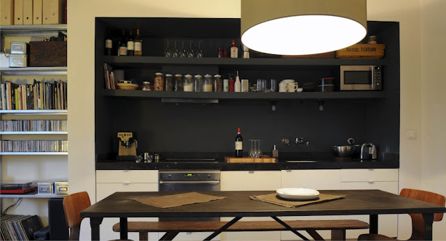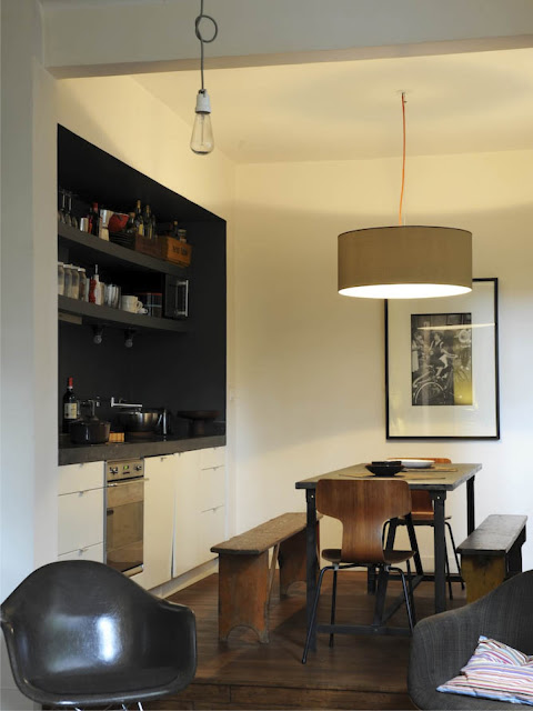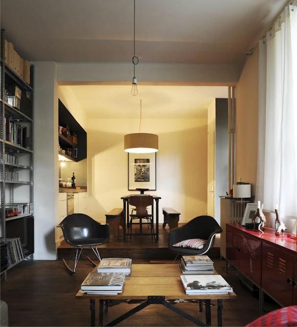 los muebles y accesorios elegidos, así como algunos paños en color oscuro para dar volúmen y profundidad. El salón se desarrolla como espacio multifuncional y el resto de la vivienda, como espacios acogedores comunicados entre sí. En esta vivienda, que a todos los efectos en cuanto a distribución y características generales parece un mini-loft, conviven en perfecto equilibrio muebles y objetos de estilos dispares, y materiales, texturas y colores diversos. Sería mi apartamento ideal: piezas de diseño vintage, distribución tipo loft, sencillez, toque industrial... ¿qué os parece?