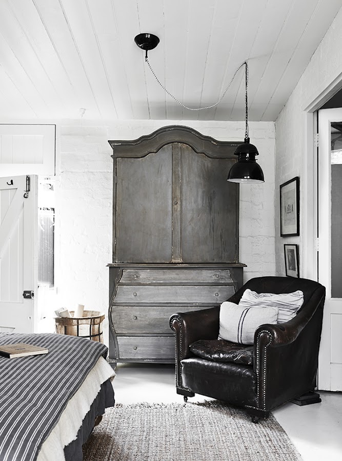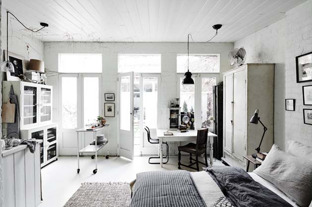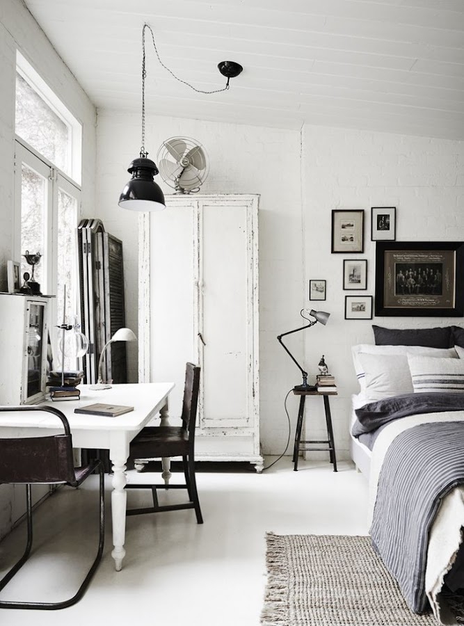 El interior que hoy os traigo responde al apartamento de Lynda Gardener. El proyecto The White Room es un precioso estudio de estilo vintage industrial situado en Daylesford, Australia y que es una casa de 1902 de tres dormitorios lista para alquilar. Su dueña ha conseguido diseñar un interior a modo de retiro ideal para turistas que buscan perderse en medio del campo y disfrutar de paz y tranquilidad. La paleta que predomina en este ambiente es la blanca, y se complementa con un maravilloso mobiliario vintage, detalles industriales y textiles y linos franceses. Todo el interiorismo responde a una propuesta algo clásica de corte rústico pero de estilo muy personal y acogedor. A pesar de la frialdad del color, resulta cálido y confortable.