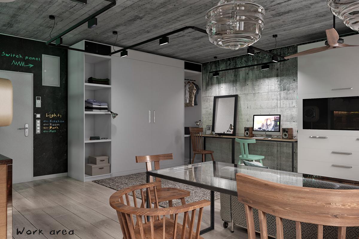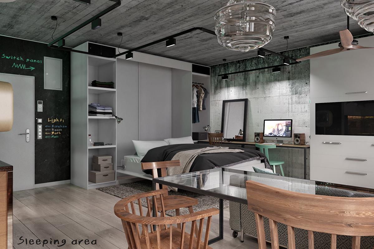 La cama abatible, que se día se recoge, nos permite contar con una amplia zona de chillout o descanso, y una mesa de trabajo corrido. El juego de luces indirectas para crear distintos ambientes y el almacenaje de elementos de suelo a techo, completan un interior diseñado al milímetro. La cocina en acabado metálico resulta muy atractiva y se introduce en la zona de salón creando un diseño de conjunto.