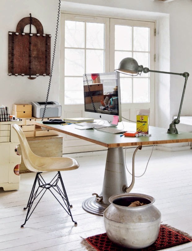Para la zona de trabajo, han elegido un estilo industrial con piezas muy originales, como la mesa
