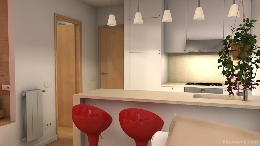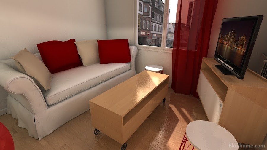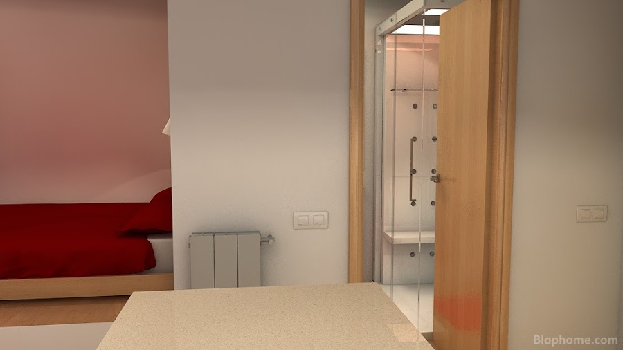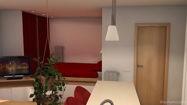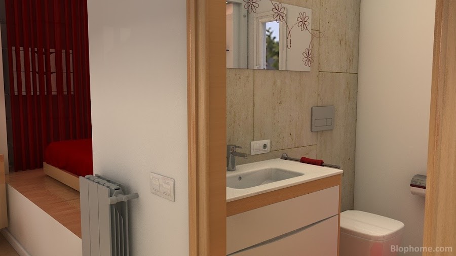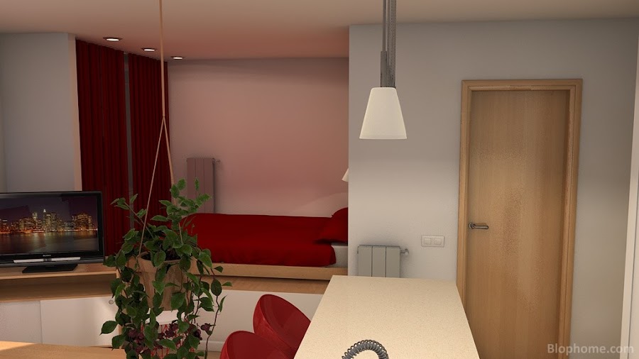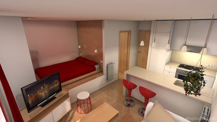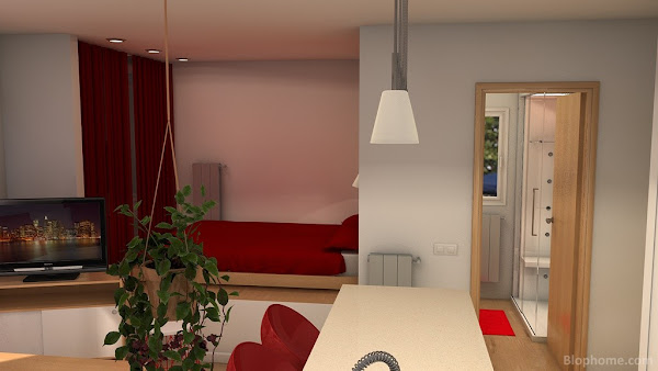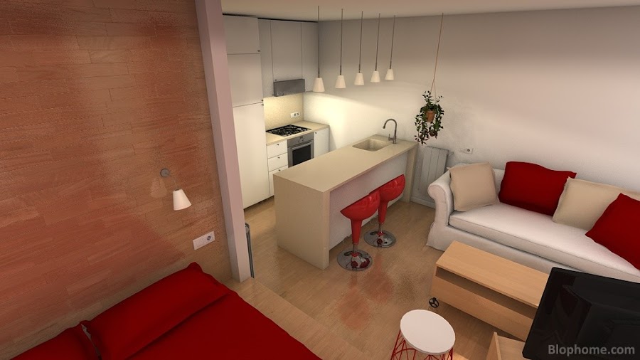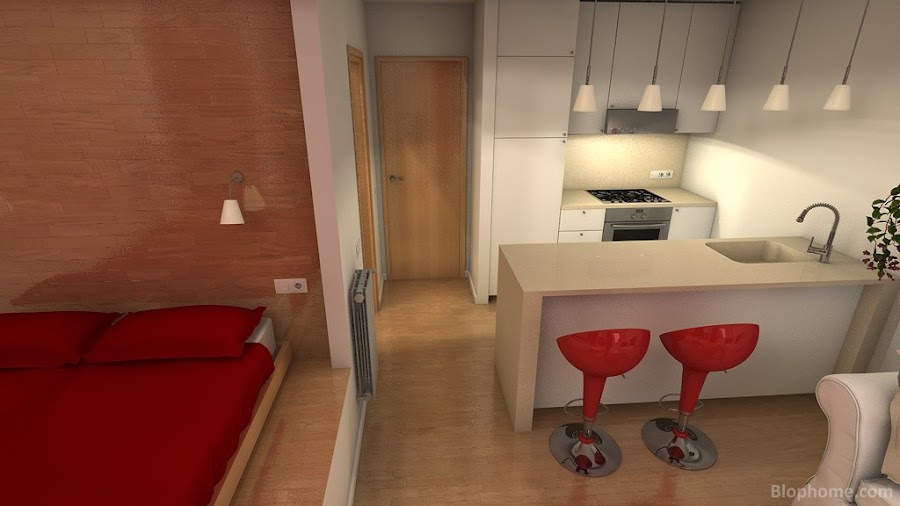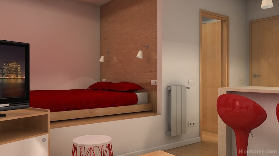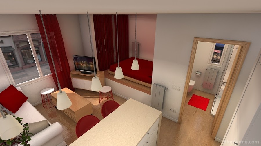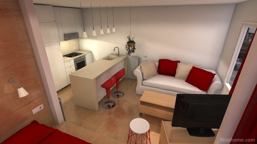 minipiso 25m2 (beis, blanco y rojo para relajarte con alegría)