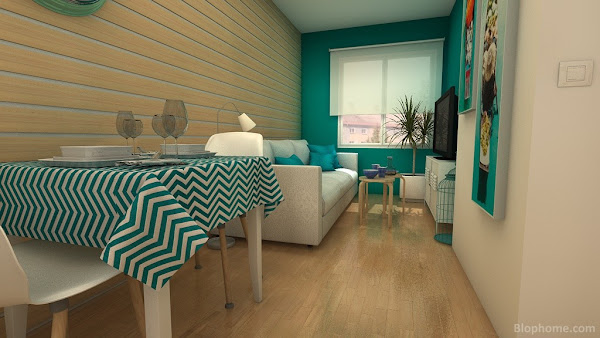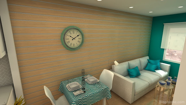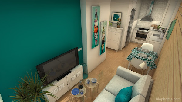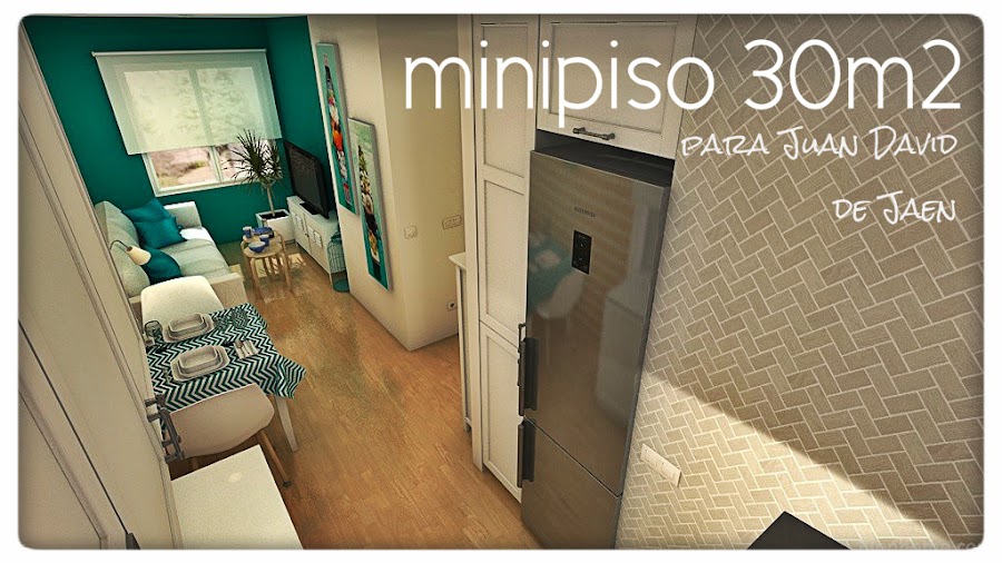 Esta semana un chico llamado Juan David de Jaen, se puso en contacto conmigo a través del facebook y me explico que sus abuelos tenían un pequeño garaje con un piso arriba el cual quería convertir en una minicasa para el. Me envió un plano muy bien hecho y me dijo que tenía carta blanca para hacer lo que quisiera ya que no tiene en la parte de arriba ni tuberias ni electricidad y todo sería nuevo así que podía elegir la distribución que quisiera. El único requisito que tenía era la habitación cerrada. El resultado ha sido esto que os muestro. Un minipiso luminoso (pese a solo tener un par de ventanas) y con algo de color, con un diseño juvenil y a la vez "clásico" y "atemporal".