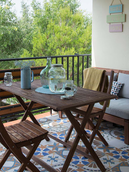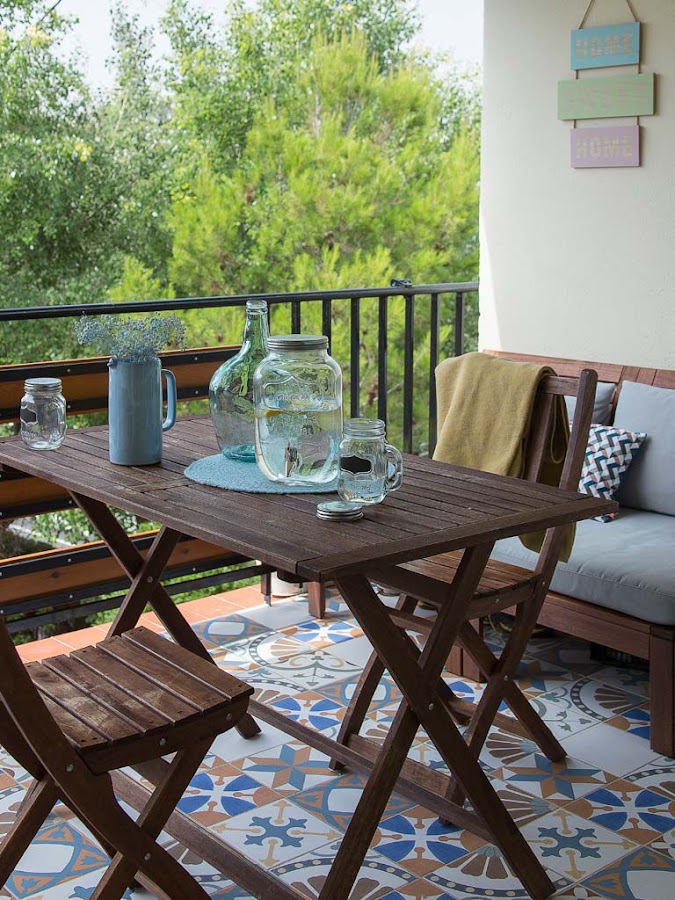Desde el salón se accede a una pequeña terraza, un lugar que se convierte en el alma de la casa en cuanto sale un rayo de sol. El suelo hidráulico caldea un mini espacio abierto que cuenta con un sofá y una mesa con sillas.