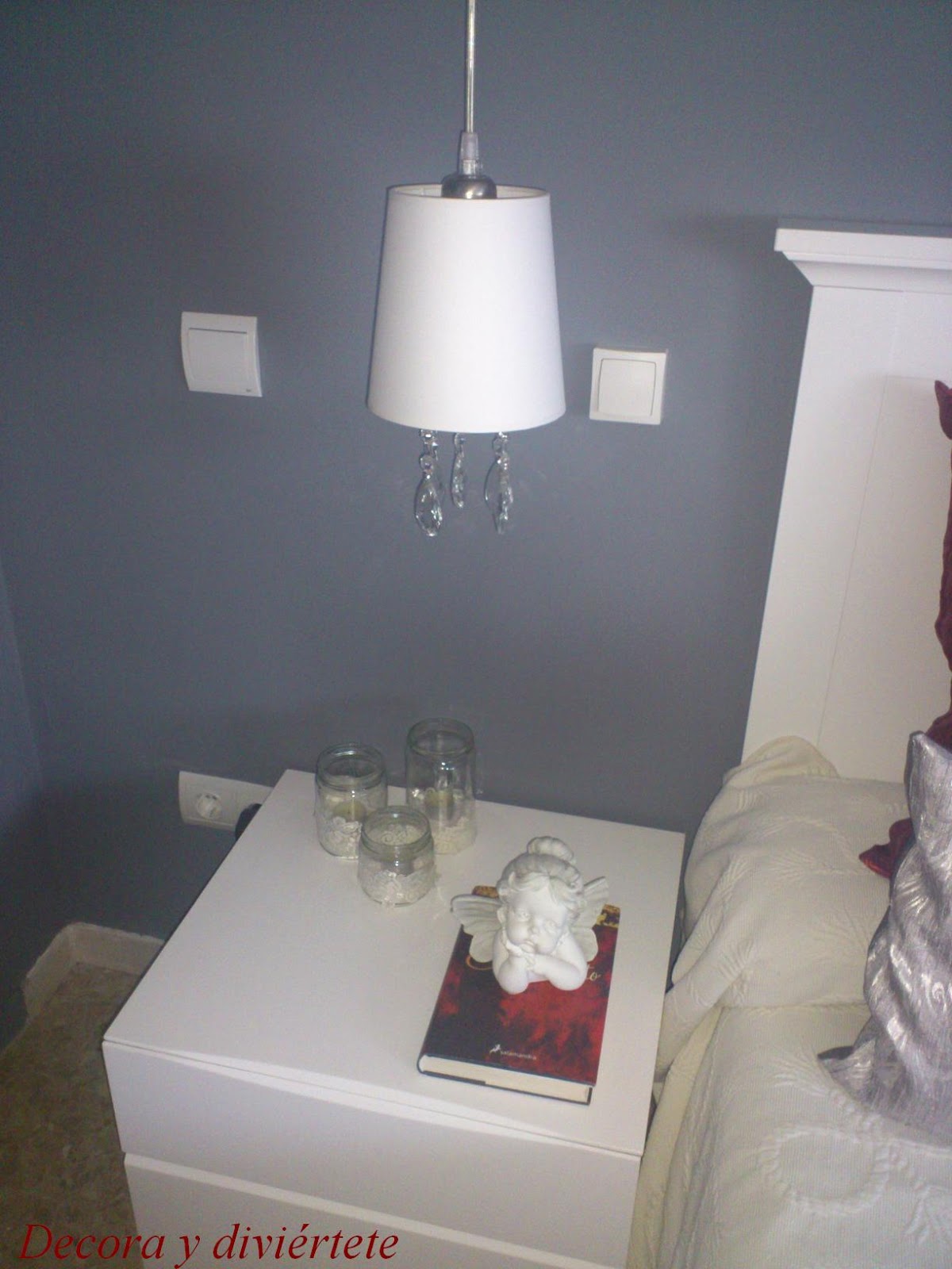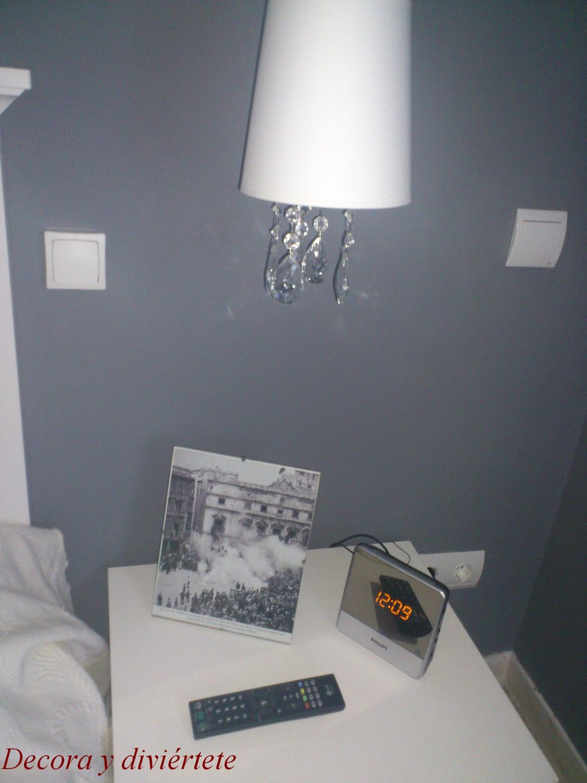 Primero os pongo como estaba la habitación , la puerta y como era la mesita de noche antes del cambio.