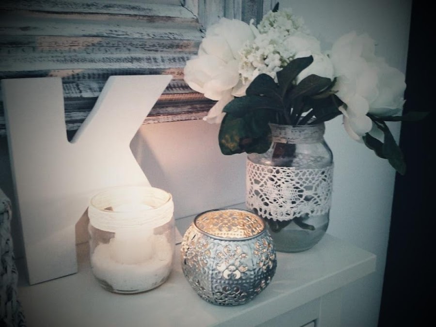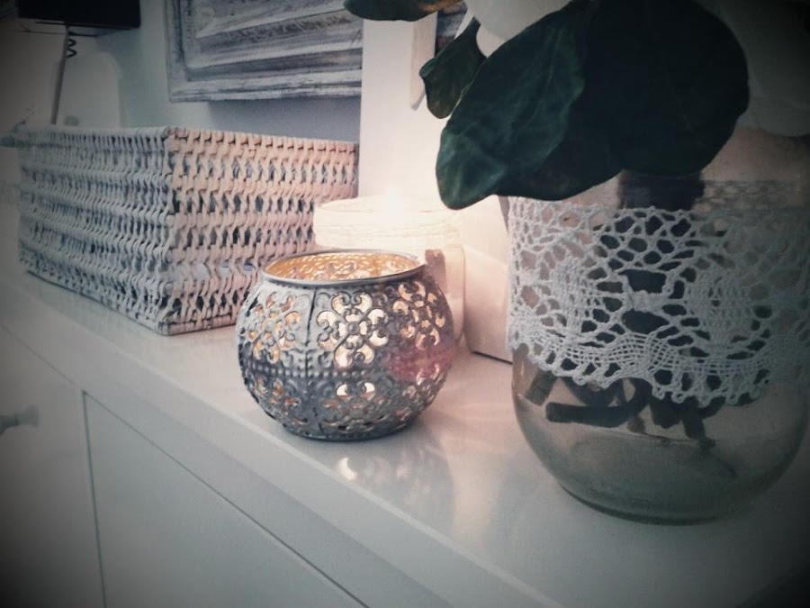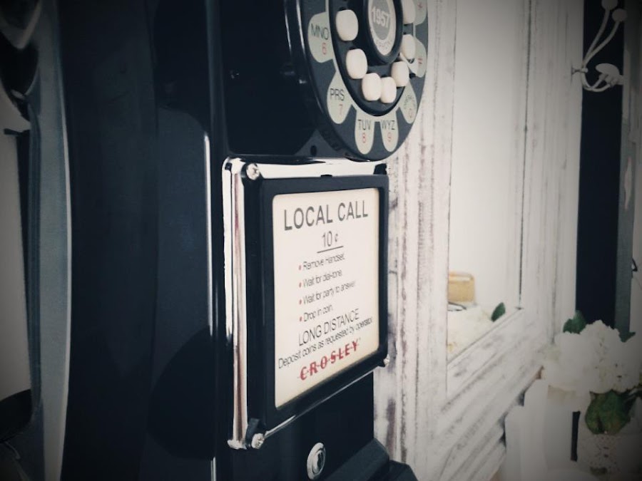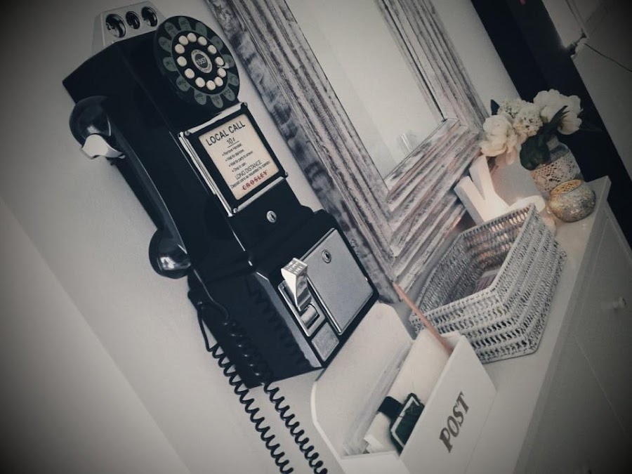 Me gusta especialmente el contraste con el teléfono retro, la mezcla de las fibras naturales y los tarros de inspiración romántica.
