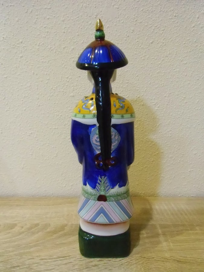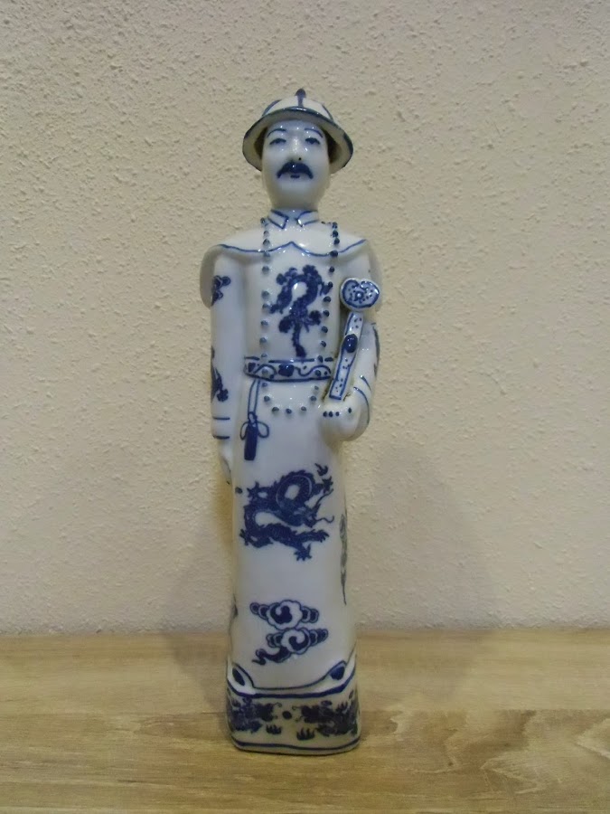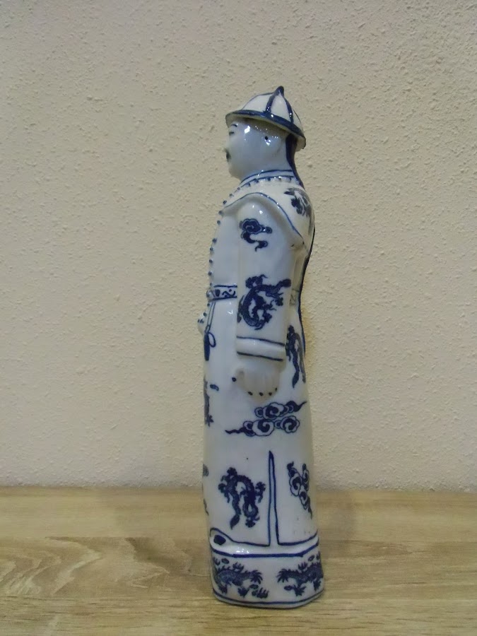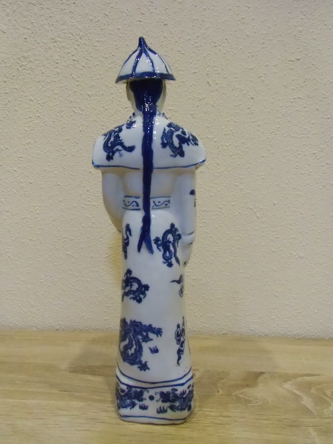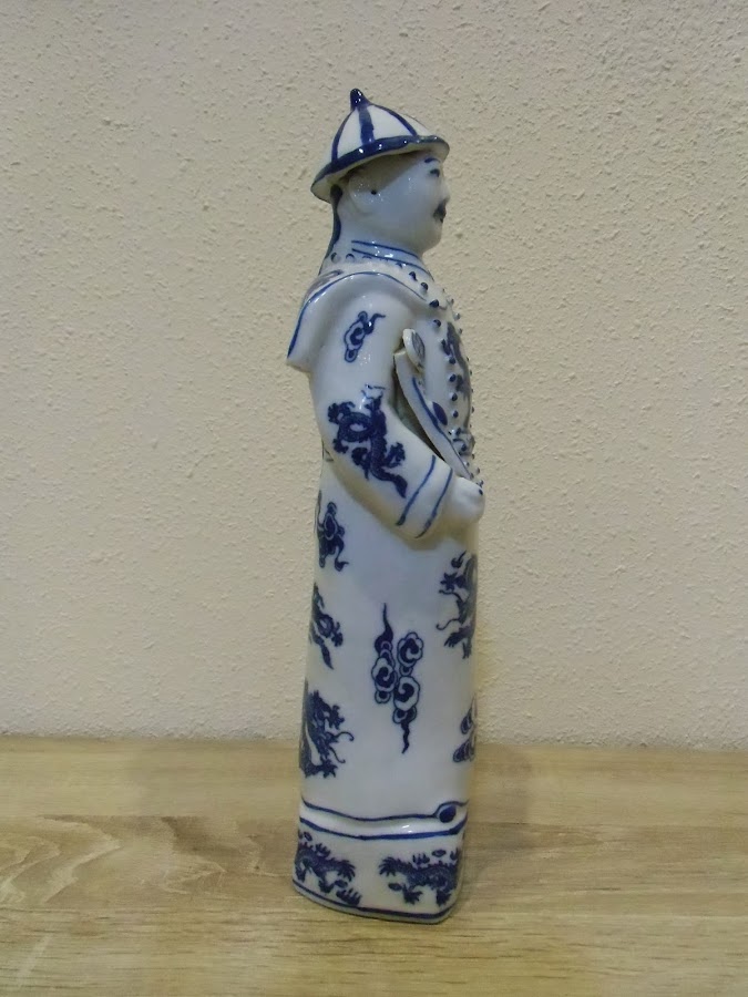 --Solo un poco: 34cm. Pero tiene una porcelana finísima decorada con dragones en azul cobalto sobre blanco. Es una maravilla, mira: