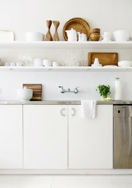 Los estantes abiertos marcan tendencia en todas las cocinas, desde el estilo más Vintage hasta la cocina puramente Minimalista. Tener la vajilla, menaje de cocina, cristalería... a la vista, también forma parte de la decoración de la cocina y al tener todo a la mano proporciona comodidad.