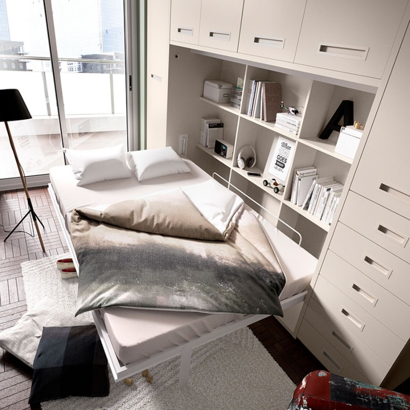 Podemos ver aquí unas camas abatibles de calidad que practicamente parecen y ocupan el espacio de un closet