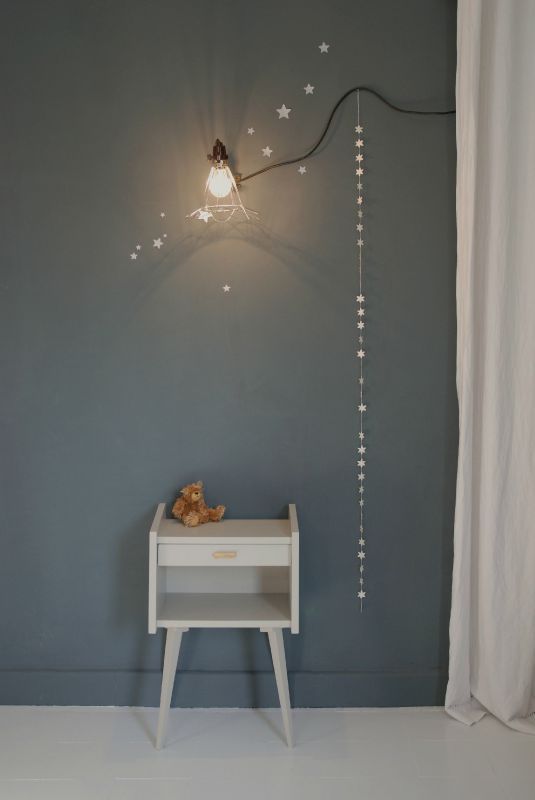 Me encanta esta mesita de noche pintada en blanco. Con la pared gris, queda precioso.