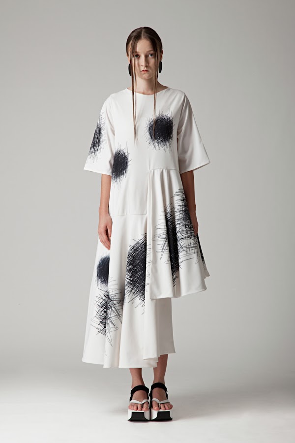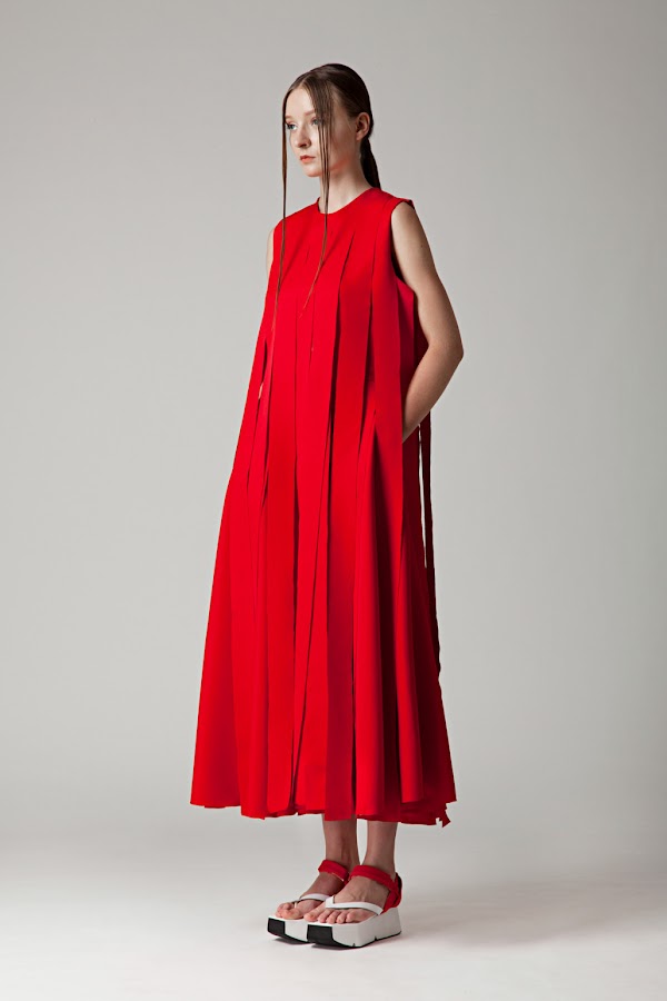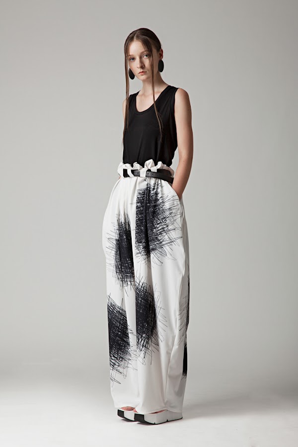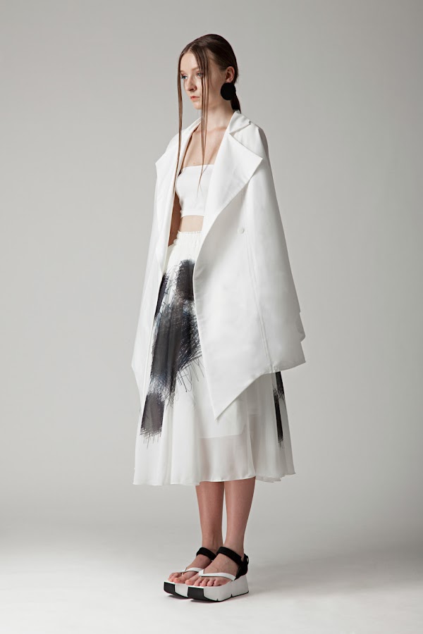 Como resultado, de esta investigación y nueva línea de proceso de diseño, las siluetas creadas son nuevas, frescas, minimalistas, sin expectativas ni ideas preconcebidas. Olvidando todo color, dejando como únicos protagonistas al trío clásico de blanco, negro y rojo, con estética muy "samurai".