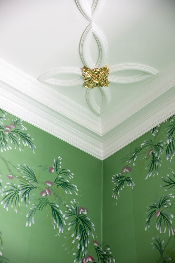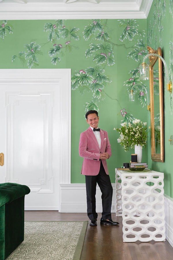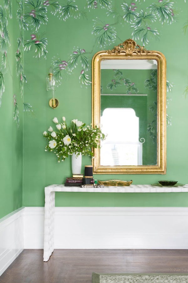 Una de las cosas que más llaman la atención del espacio es el papel pintado a mano, bordado y con acabado sedoso, de De Gournay, que envuelve todo y le da ese aire sofisticado pero a la vez, fresco y primaveral.