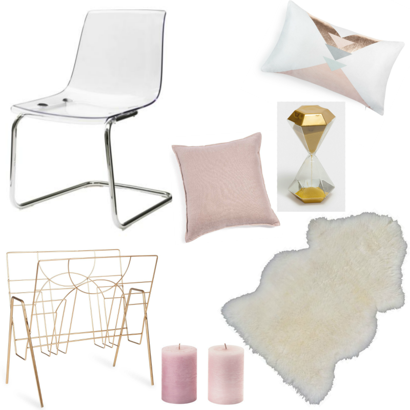 Silla, alfombray velas de Ikea, reloj de arena de Zara Home, cojines y revistero de Maisosn du Monde.
