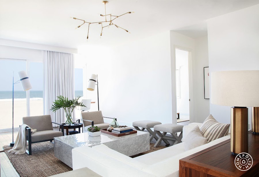 Esta casa, es una casa de playa que con el tiempo que tenemos se echa de menos el veranito. Se encuentra en Los Angeles y su mayor virtud es la luminosidad que se consigue en cada rincón con ayuda del blanco que es el que predomina por todas las paredes y techos de la casa. Para los muebles se han escogido madera tanto de color natural como wengué, mezclado con piezas de diseño. Sabes, me ha llamado mucho la atención las lamparas y es que son todas originales y si no fíjate, tanto en el techo como en las mesillas de noches de los dormitorios. a cada cual más bonita.