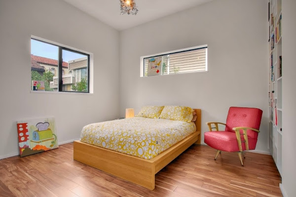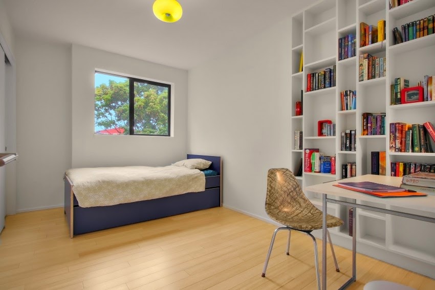 Simple y funcional el diseño de la arquitectura moderna, cuenta con 1600 pies cuadrados y cuatro dormitorios la moderna casa desafía el estilo estético predominante. Las paredes blancas irradian un aura de pureza y simplicidad que da vida a las piezas decorativas de diferentes materiales utilizados en cada habitación. La estanterías personalizadas funcionales sirven como un divisor para el dormitorio y la cocina. Los mostradores de mármol, así como la isla de la cocina sirve como acentos clásicos en el diseño moderno de la casa.