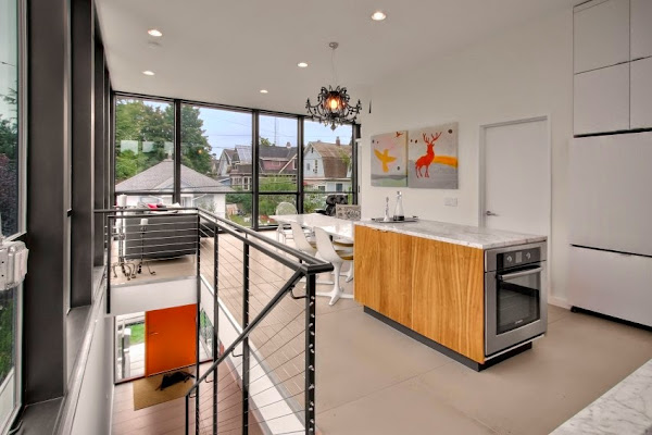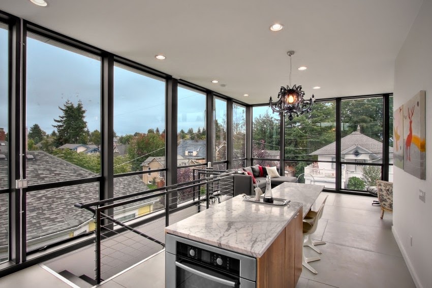 Ubicada en Seattle, Washington, EE.UU., la moderna casa es espaciosa y luminosa, aumentando su sentido de movimiento y espacio.
