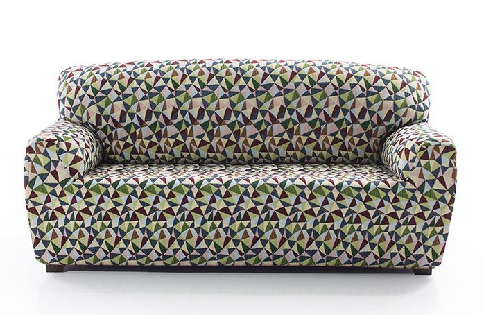 La funda de sofá Baden Big es una práctica funda para sofás elástica y confeccionada en una pieza, que resulta perfecta para sofás de asientos fijos, al incluir dos piezas de espuma, una vez colocada, el resultado es un sofá de aspecto retapizado. Este modelo, en concreto, llama la atención por su colorido diseño de piezas triangulares en varios colores, lo que lo convierte en la solución perfecta para dar a la sala de estar un aspecto moderno, que parece inspirado en el estilo nórdico.El estilo nórdico al alcance de cualquier hogar con esta funda moderna y alegre, que está disponible para sofás de una, dos y tres plazas. La combinación de colores que conforman las piezas y que se presenta en forma de dibujos de triángulos irregulares, hacen que estas fundas de sofá sean muy fáciles de combinar con cualquier ambiente, aunque quedan especialmente bien en hogares de inspiración nórdica.