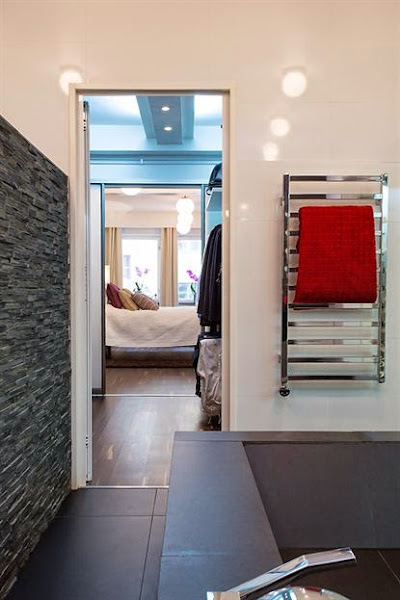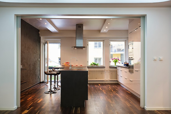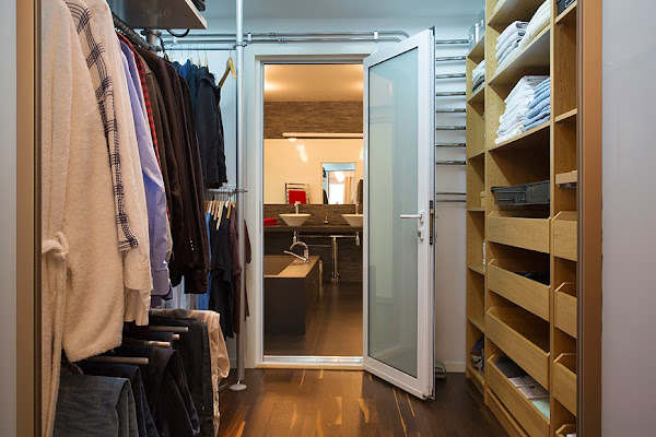 La mega estantería que recorre toda la pared es súper original y sin duda una gran ayuda para almacenar y almacenar lo que queramos.