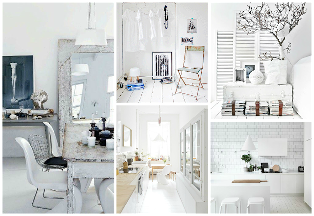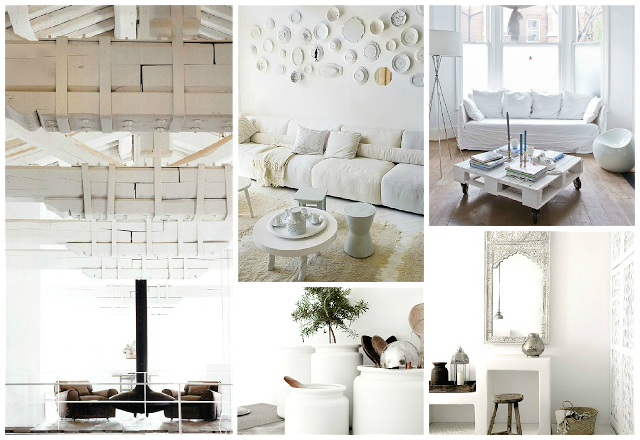 Holaaaaa chic@s ya estamos con muchas ganas de que llegue el Finde y hoy vamos con una nueva dosis de inspiración, ¡nuevo mes...nuevos Moodboards! y en esta ocasión, para combatir un poco al calor que estamos teniendo, lo vamos a dedicar al color blanco. Por tod@s es conocido que el empleo del blanco es uno de los trucos más usados cuando se trata de decorar un espacio pequeño, pero también hay quien afirma que abusar mucho este