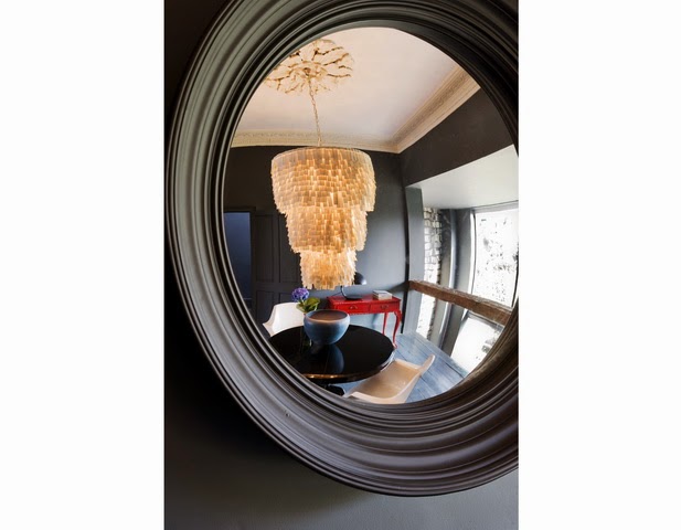 Impresionada me he quedado cuando he visto este salón en Pinterest. Por su luz y por el juego cromático. Y sobre todo por el bodegón de jarrones sobre el aparador en degradado de colores...todo un eje ...
