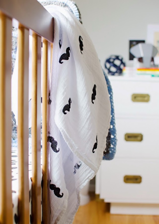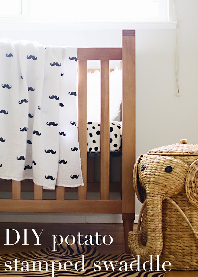 En su blog Brittany Makes.com, esta "contable de día, entusiasta del DIY de noche", nos enseña cómo hacer un acogedor arrullo lleno de pequeños y simpáticos bigotes estampándolo tú misma con una patata (también en inglés). Está pensado para bebés, claro, pero la idea del arrullo se puede llevar a otras telas como las de una sábana, una funda nórdica a la que se le quiera dar un cambio... en el blog Delikatessen.com, Kati Sardiña, explica cómo aplicar esa misma técnica de estampado para crear, por ejemplo, un cojín.
