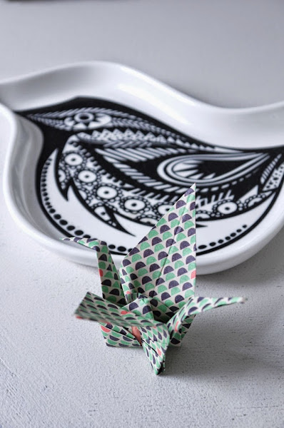 Lo primero que tenemos que hacer es elegir unos papeles bonitos que nos combinen con el resto de la decoración de la estancia, pueden ser todos iguales o con diferentes colores y estampados, pero intentando crear una armonía entre ellos. Ahora llega el momento de realizar los pajaritos de papel con la técnica japonesa del Origami, es decir, "el arte de doblar papel". Al final del post tienes un vídeo explicativo de como hacerlo. Una vez que tengamos todos los pajaritos de papel hechos, los atamos con un cordón fino a una rama y esta rama a su vez a otra....tal y como se ve en las imágenes.