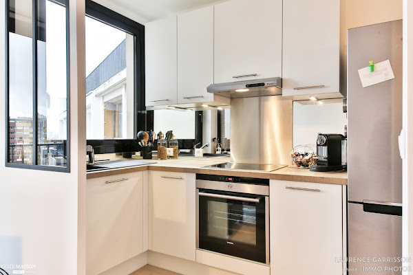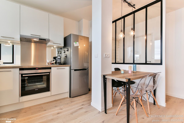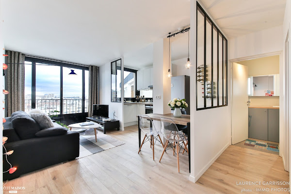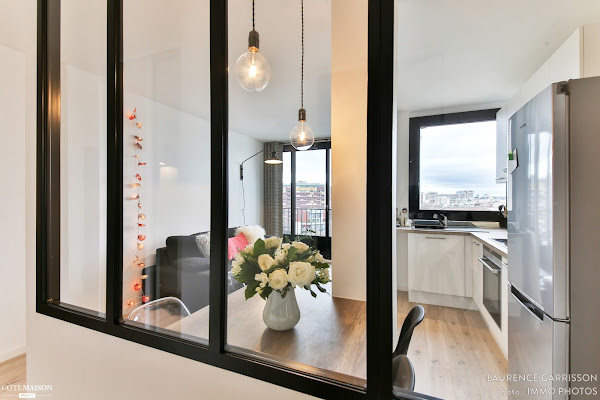 Creo que todos coincidiríamos si nos preguntaran que es lo primero que nos lama la atención de este apartamento, todos diríamos la luz. La luz es la protagonista de esta decoración y es la encargada de que este apartamento de 43m² parezca visualmente mas grande lo que es. Esta luz se consigue gracias a los magníficos ventanales que han instalado, incluso para dividir espacios. Y es que esta última opción está últimamente muy de moda y aquí en el blog ya te hable de ello, de colocar ventanales interiores para dividir espacios. Siempre me he preguntado como aquí en España no disfrutamos de ventanales tan amplios para aprovechar al máximo la luz solar, y la única explicación que le encuentro es que se trata de un tema cultural. Porque por el calor no tendría que ser ya que hoy en día existen aislamientos muy buenos para eso.