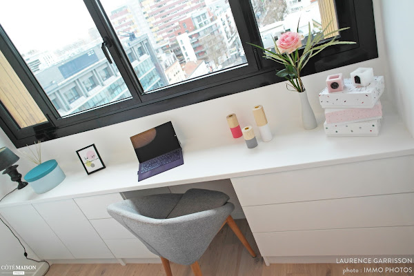 Una de las cosas que mas me gustan de este apartamento, a parte del blanco, negro y madera claro; es lo bien solucionados que están los distintos espacios. Aunque el premio se lo lleva la zona del comedor y como han solucionado el problema de que haya una columna en ese lugar. Si soy justo ese premio lo tendría que compartir con como han aprovechado el gran ventanal del dormitorio para colocar allí un gran escritorio. Son sin duda ideas sencillas y muy practicas. Ya por ultimo hay un detalle de este tipo de apartamentos que siempre me ha gustado y es que son apartamentos que te ayudan a ser ordenado y a que todo este despejado. Y eso es bueno porque si quieres tener una casa bonita esto es fundamental.