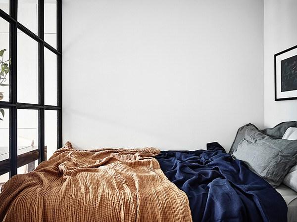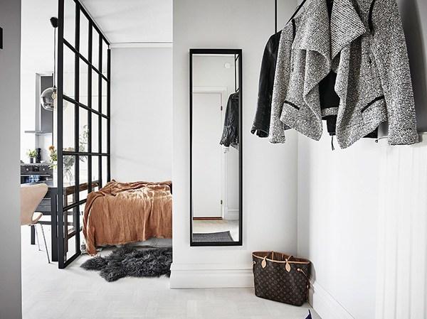 De la pequeña separación entre la zona de estar-cocina y el dormitorio no voy a comentar nada… bueno si, que es sencillamente perfecta! Y es que estas mamparas de cuarterones negros y acristaladas me enamoraron desde la primera vez que las vi.